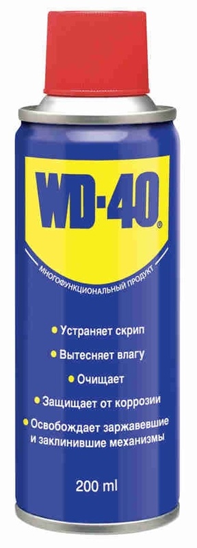 • Многофункциональный продукт WD-40 — мощное средство для удаления грязи. Грязные, скрипучие петли быстро убираются благодаря знаменитой сине-желтой банке.
