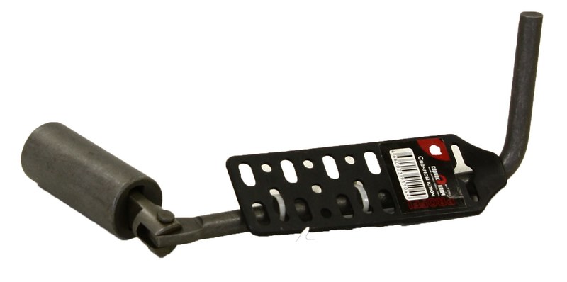 Ключ изготовлен из стали №45, твердость 36-45 HRC. Изделие защищено от коррозии цинковым покрытием. Конструкция ключа имеет эффективный и надежный кардан со стабилизирующей пружиной, правильную геометрию головки с резинкой для надежного захвата свечи и Т-образную сварную рукоятку с защищенным покрытием из полимерных материалов. Головка имеет стандартный шестигранный профиль. Длина головки - 25 мм, глубина – 35 мм. Длина ключа – 350 мм, Т-образная ручка - 14х8,5 мм, вес – 315 грамм.
