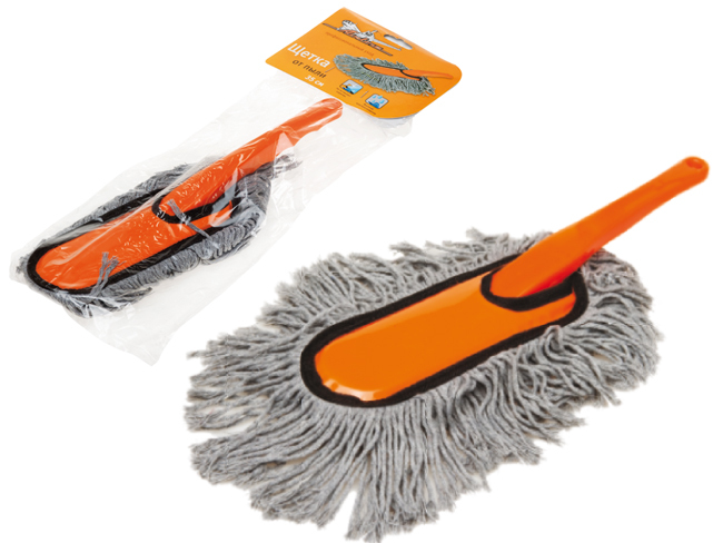 Компактная щетка позволит быстро очистить салон автомобиля от пыли и мелкого мусора. Длина ручки изделия составляет 35 см. Рабочая поверхность щетки оснащена длинным ворсом, который захватывает пыль и устраняет ее с убираемой поверхности. После эксплуатационного периода изделие легко моется и высыхает за короткий период времени благодаря особому строению ворса щетки.